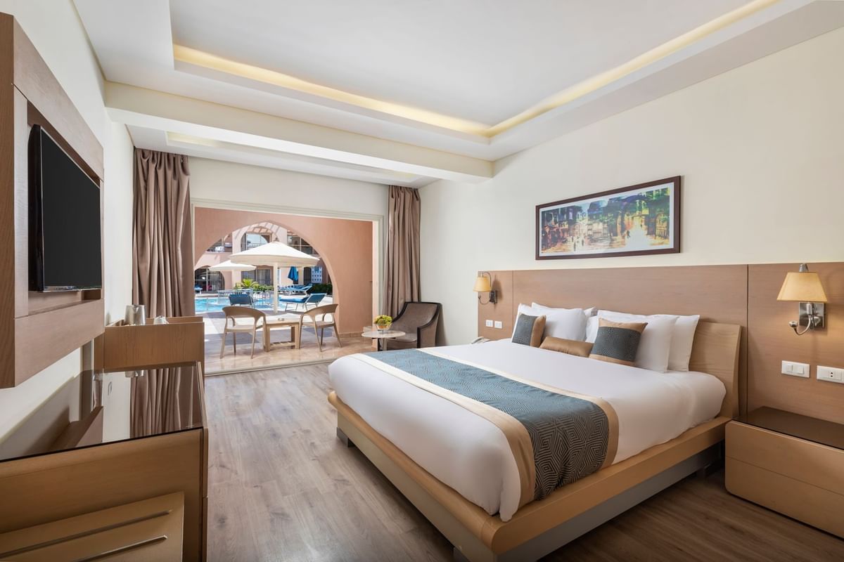 Welcome to Pickalbatros Alf Leila Wa Leila Resort, where every room is a sanctuary of comfort and tranquility. Our elegantly designed rooms offer a serene ambiance, plush bedding, and convenient amenities. Enjoy the breathtaking views from your private balcony or terrace. Upgrade to our luxurious suites for an elevated experience, with separate living areas and stylish furnishings that provide extra comfort. Indulge in the lavishness of your private oasis, equipped with premium amenities and personalized service that caters to your every whim. Throughout your stay in our Alf Leila Wa Leila hotel 4*, our dedicated staff is committed to ensuring your utmost satisfaction, making your experience truly unforgettable.