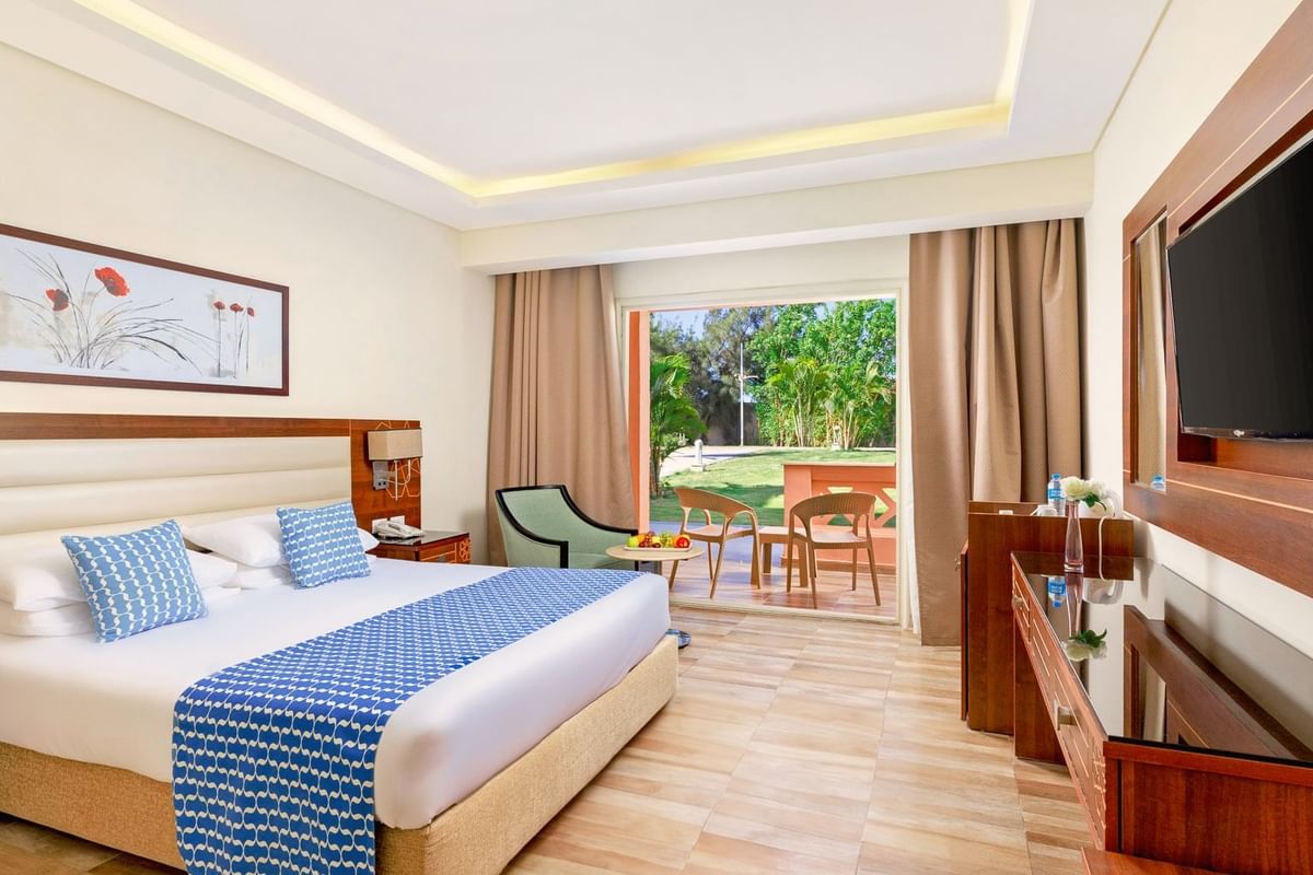 Enjoy unparalleled comfort and stunning vistas at Pickalbatros Aqua Vista Resort. Choose from sea view, garden view, or pool view rooms with modern amenities and stylish decor. Wake up to captivating sights and sounds of the Red Sea or immerse yourself in tranquility surrounded by lush greenery. Sink into sumptuous bedding and unwind in spacious seating areas. Whether it's the expansive sea, serene gardens, or inviting pools, our Red Sea accommodation offer a tranquil retreat to rejuvenate. Discover the best place to stay in Hurghada for unforgettable memories at Pickalbatros Aqua Vista Resort.