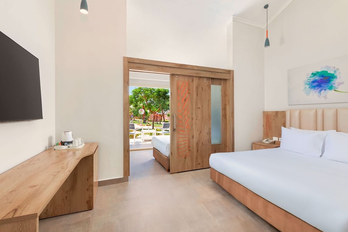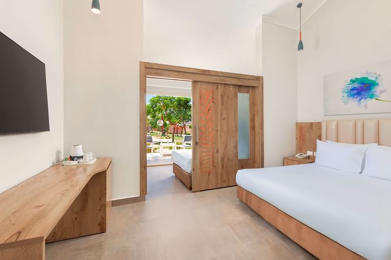 استمتع بتجربة الراحة والمناظر الخلابة في فندق ومنتجع بيكالباتروس جنغل أكوا بارك. توفر غرف فندقنا الفسيحة في الغردقة واحة هادئة مع مناظر خلابة لمحيط المنتجع الجميل. تم تصميم كل غرفة بعناية مع وضع راحتك في الاعتبار، وتتميز بمفروشات عصرية ومساحة واسعة للاسترخاء. استمتع بليلة نوم مريحة على أسرتنا الفاخرة، واستيقظ على مناظر المناظر الطبيعية الخلابة. وقد تم تجهيز كل غرفة بوسائل الراحة الأساسية، مما يضمن إقامة مريحة وممتعة. سواء اخترت غرفة عادية أو جناح فاخر توفر أماكن الإقامة لدينا ملاذًا مثاليًا بعد يوم من المغامرات المثيرة، انغمس في الراحة واستمتع بالجمال الخلاب من خصوصية غرفتك الخاصة في فندق ومنتجع Pickalbatros Jungle Aqua Park Hotel and Resort.