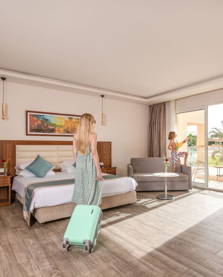 جناح ملكي مطل على حمام السباحة (85 مترًا مربعًا): استمتع بالفخامة في جناحنا الملكي مع إطلالة آسرة على حمام السباحة. استمتع بالاسترخاء والراحة في هذا الجناح الذي تبلغ مساحته 85 مترًا مربعًا والمجهز بوسائل الراحة الحديثة وخدمة واي فاي المجانية.