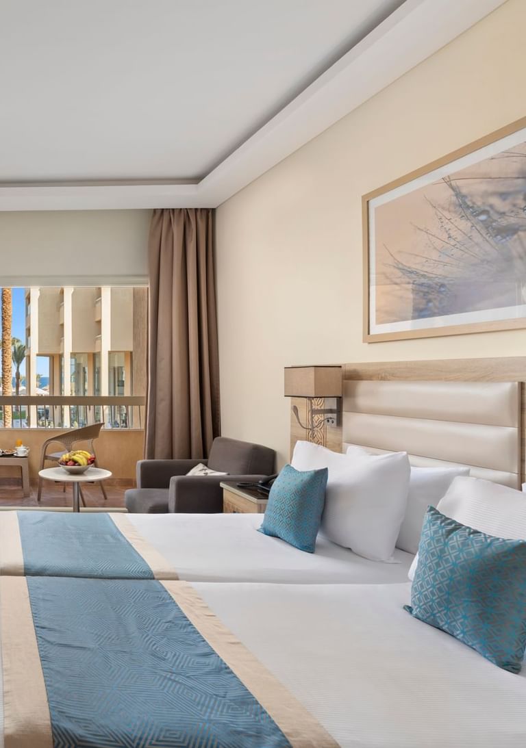 Welcome to Pickalbatros Beach Resort Hurghada, where relaxation and luxury await. Our thoughtfully crafted rooms offer comfort and elegance, with stunning views and plush bedding. Step onto your private balcony or terrace to unwind amidst beautiful gardens or shimmering pools. Upgrade to our exquisite suites with separate living areas and tasteful furnishings. Indulge in a haven of refinement and sophistication. Your private oasis awaits, adorned with premium amenities and personalized service. Our dedicated team ensures your satisfaction, creating an unforgettable experience at our Hurghada accommodation. Prepare for the allure of luxury and warm hospitality at Pickalbatros Beach Resort Hurghada.