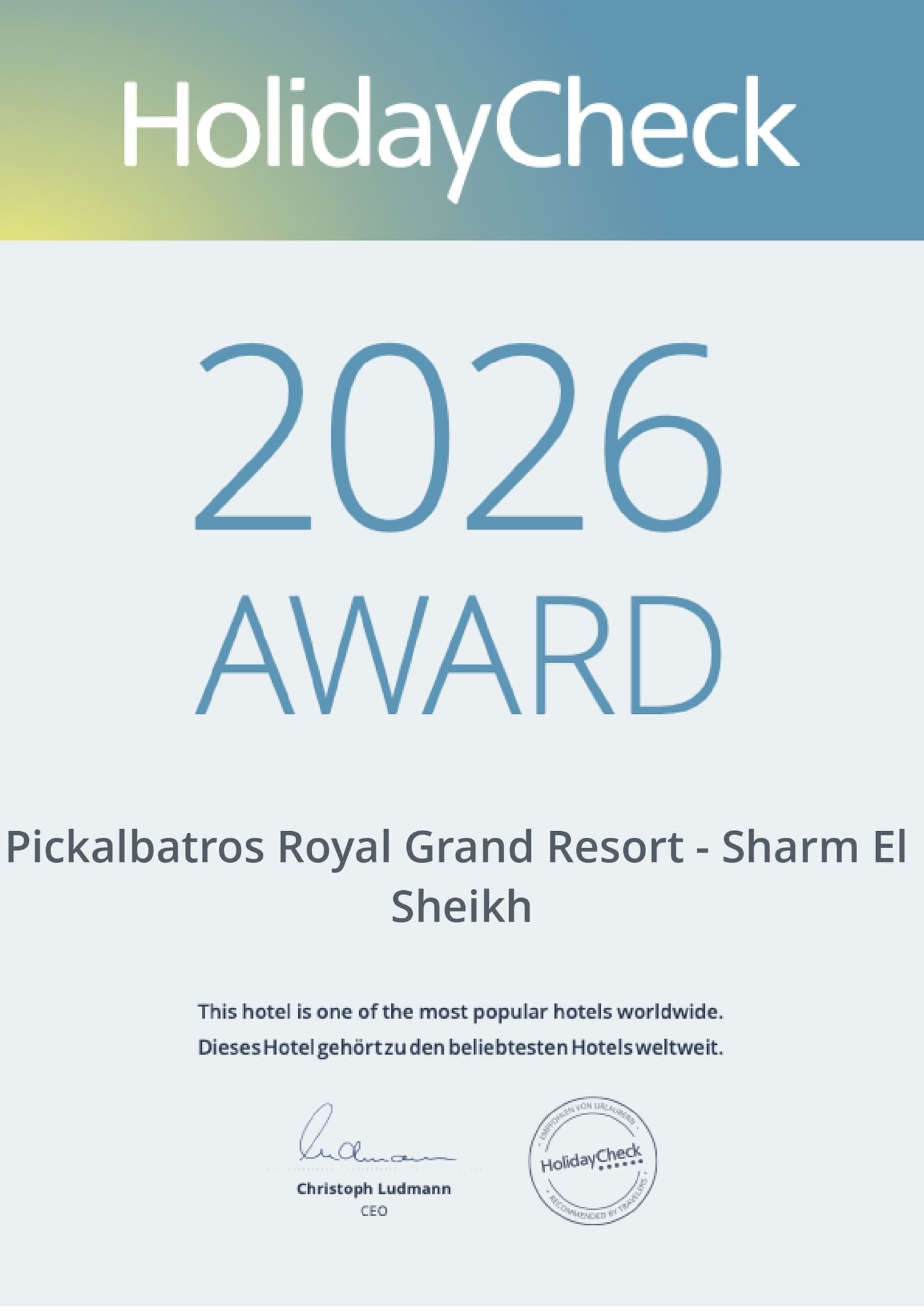 Pickalbatros Resorts Shine Across Egypt! Our Resorts Celebrate HolidayCheck Awards.