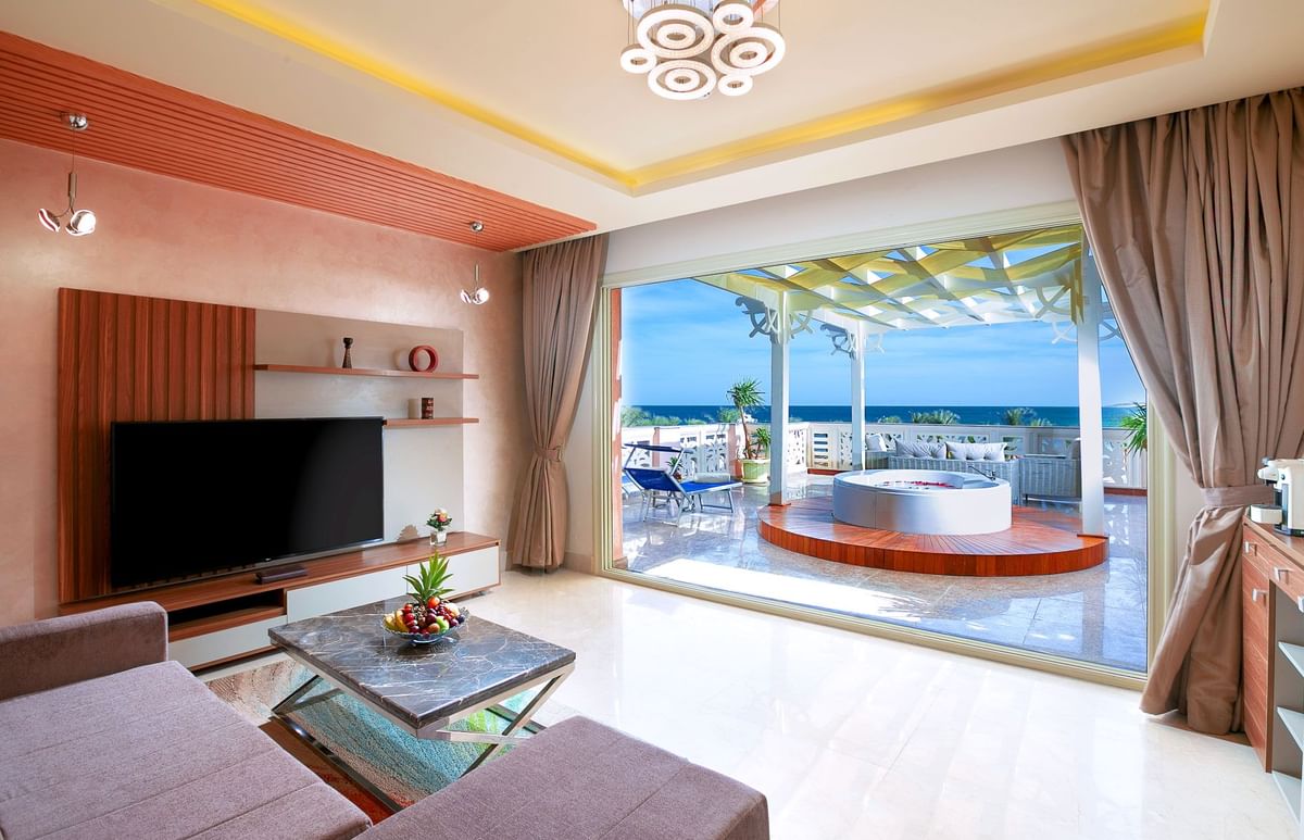 Experience pure luxury in our Suite Sea View. This 70 Sq M suite offers stunning sea views, and all the modern amenities you need for a memorable stay.